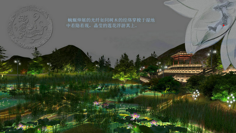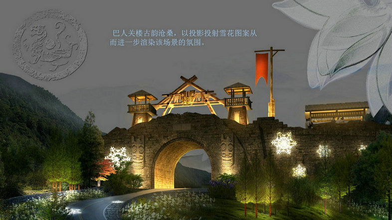 渡口鄉位于宣漢縣東北部,前河上游,面積90.86平方千米,為“百里峽”風(fēng)景區入口。項目重點(diǎn)打造渡口風(fēng)情小鎮夜景照明,提煉區域自然人文素材將其融合于夜景照明中。利用互動(dòng)燈光、虛擬現實(shí)技術(shù)、水幕投影等方式增加游客的參與性和體驗感。動(dòng)與靜的結合豐富空間層次,靈活多變的內容隨意轉換可為景區提供多種燈光氛圍。動(dòng)靜相宜,交互生輝。